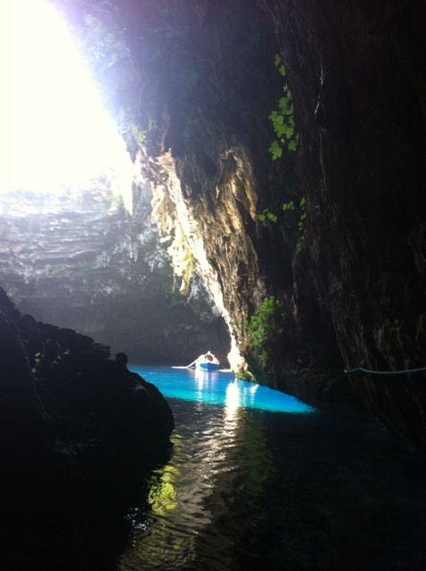 oluşturan Melissana Mağarası’nı ve sonra da, Damlataş ‘a benzeyen etkileyici Drogarati mağarasını gezdik. Adanın diğer tarafındaki Argostali şehri yolunda ise, her yerde çok verimli olduğu üzerindeki çiçeklerden anlaşılan zeytin ağaçları ve koyu renk yapraklı ağaçlardan oluşan ormanlar var..
