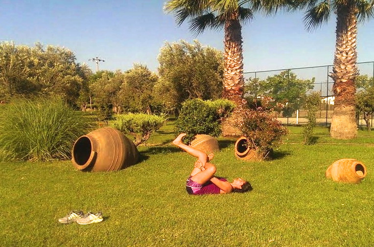 17: Aynı esnetmeyi sırtüstü yatarak da uygulayabilirsiniz. Ayak parmakları flex şekilde bacakları ‘4’ pozisyonuna getirin. Ellerinizi bacaklarınızın arasından sokarak parmakları sağ bacak arkasında kenetleyin. Sağ bacağınızı kendinize doğru çekin. Hareketi, diğer bacakla da uygulayın.